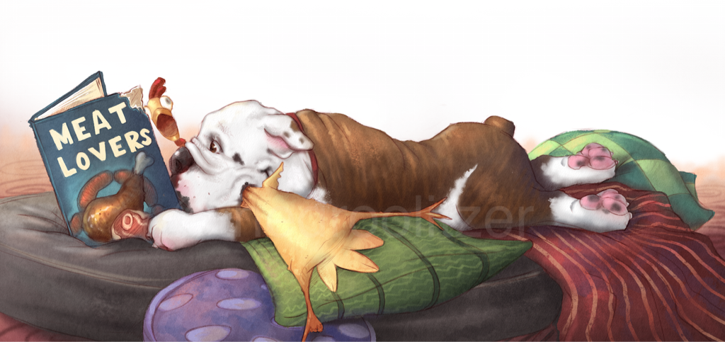 Bogie: Okay, okay, this a terrible idea but these illustrations are awesome. I especially like this one with you and me at the dog park. Hey, do you think Olive the Basset Hound wants to keep you? Dude, I heard she teaches rubber chickens to fly! You should totally go check her out – for forever.