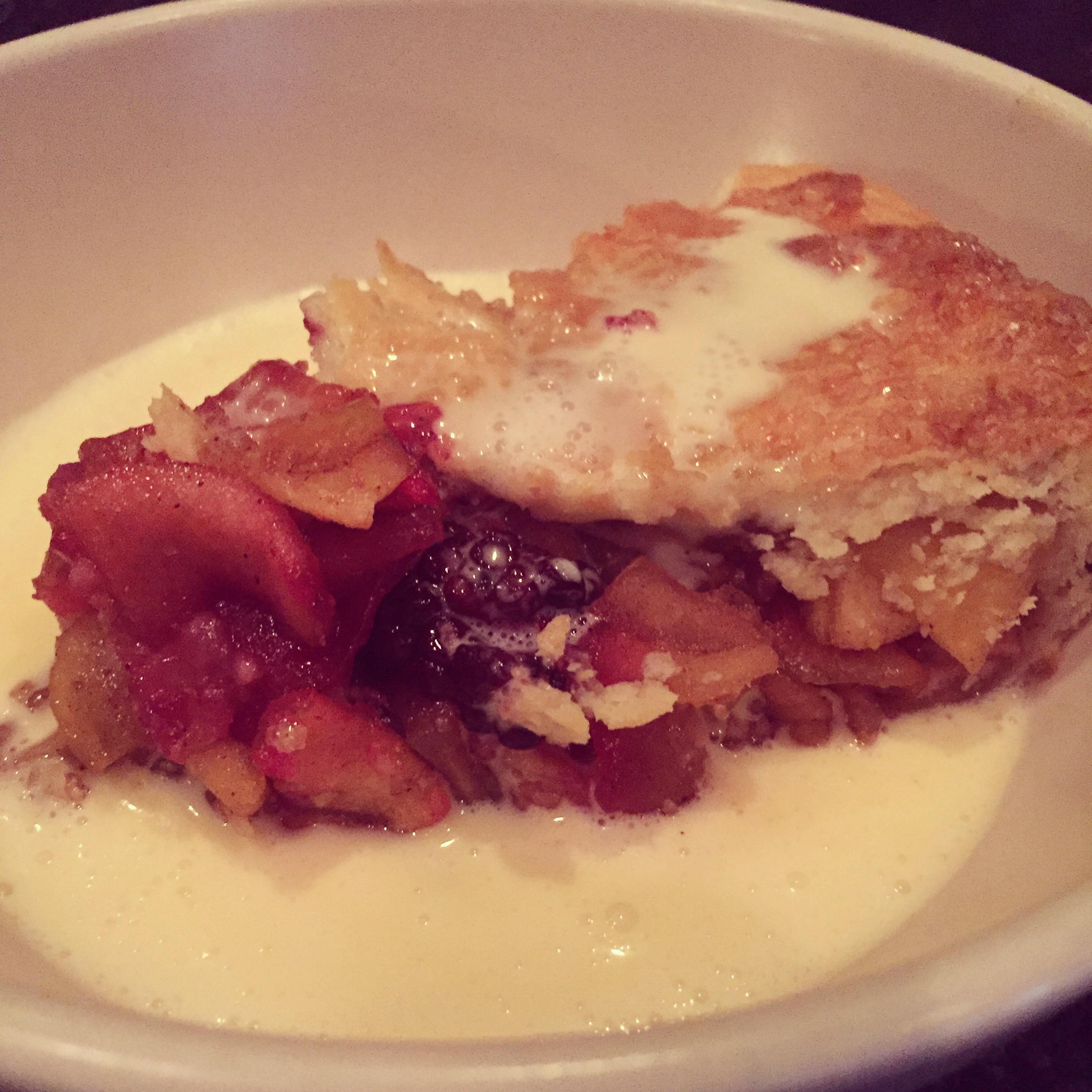 The joint was hopping by 7 and people were starting to cluster around the bar as they waited for their table. Amanda and the wait staff were on point with their service. I swear they could tell you every ingredient in each dish down to the herbs and spices. When it came to dessert there was only one slice of pink lady apple and blackberry pie left. I nabbed it in the nick of time. The crust was flakey and not too sweet and it floated in a buttermilk anglaise. Unreal. I washed it all down with banana bread and fresh whipped cream while the people hovering around the bar watched in awe.
